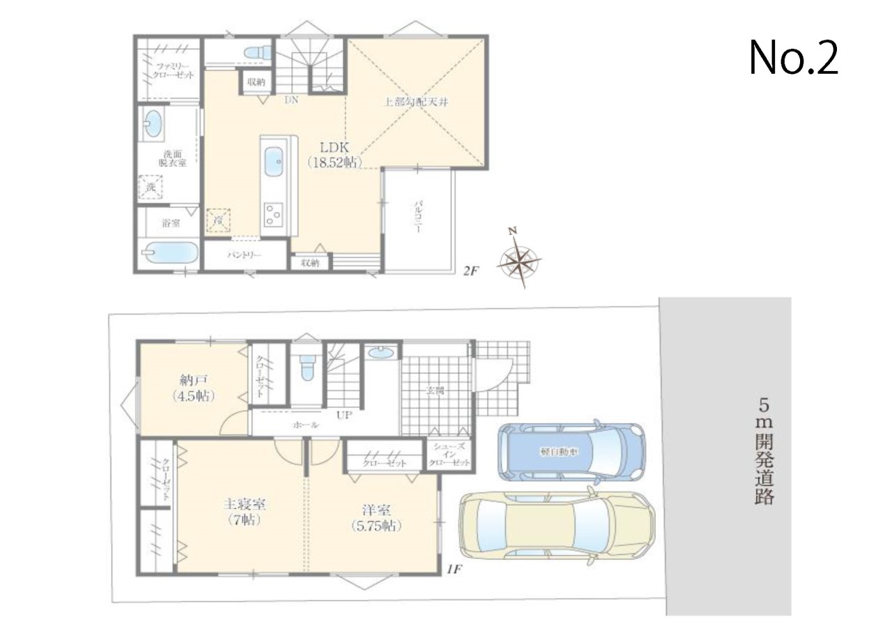 | 駐車場 | 2台 | 道路の幅員 | No.2:東5m /No.3:東5m |