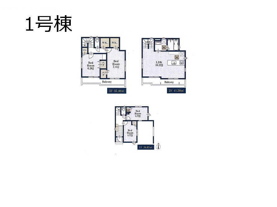 | 駐車場 | 1台 | 道路の幅員 | 1号棟:南4m /2号棟:南4m /3号棟:南4m |