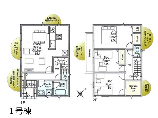 | 建物面積 | 85.86m2~96.78m2 | 土地面積 | 120.09m2~142.87m2<私道負担面積355.2m2 私道負担割合1/13> |