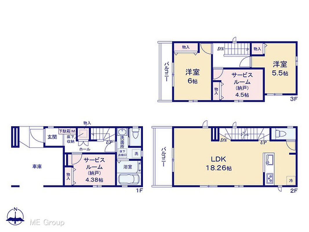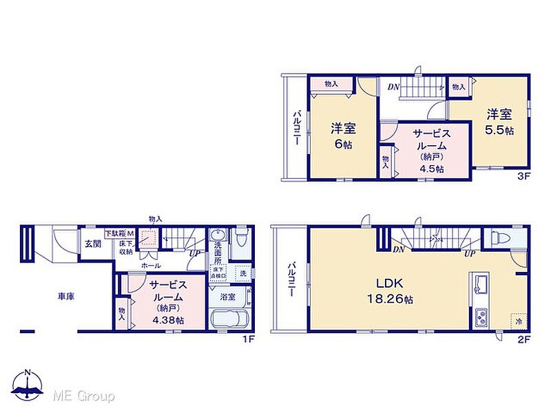 | 建物面積 | 107.95m2~112.71m2 | 土地面積 | 63.47m2~63.74m2 |