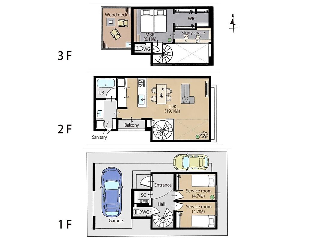 | 間取り | 1LDK+2S | 建物構造 | 木造 3階建 |