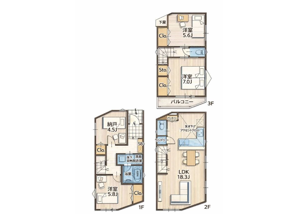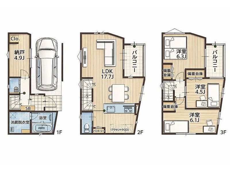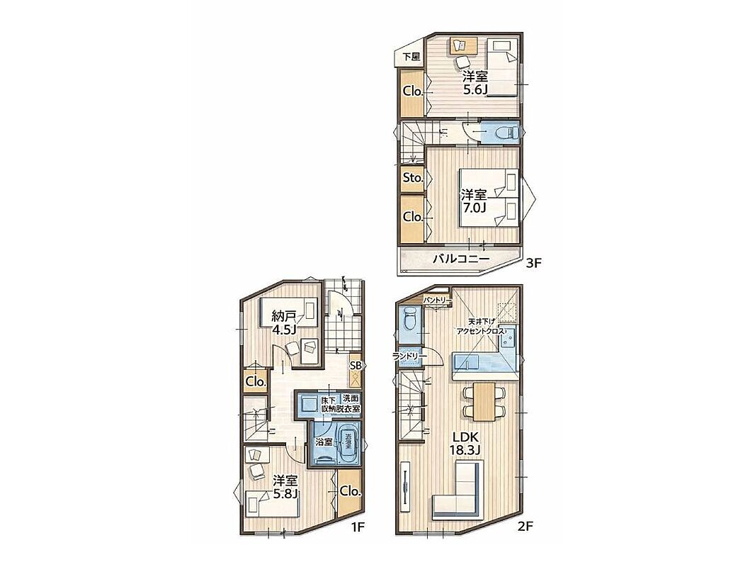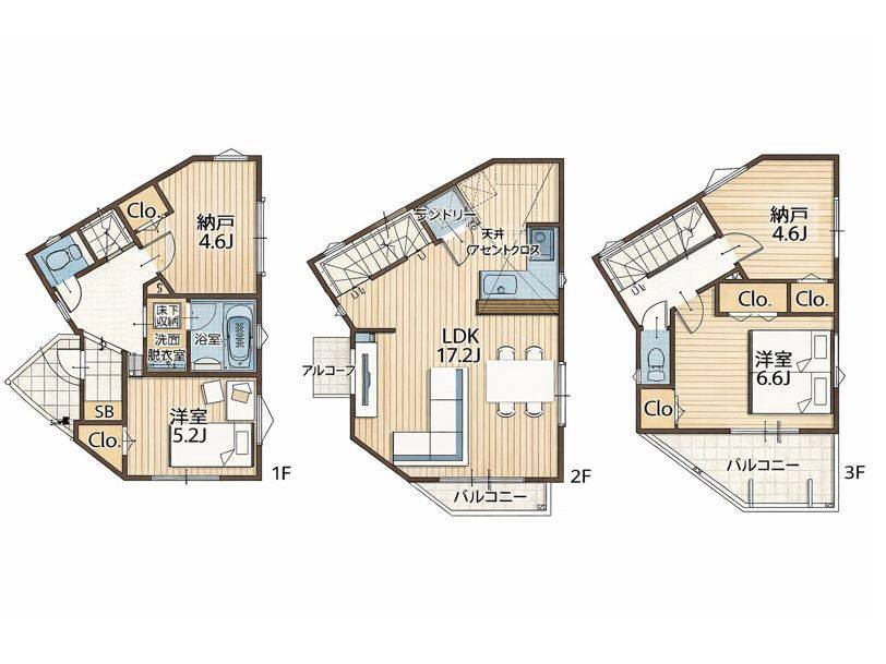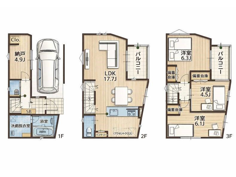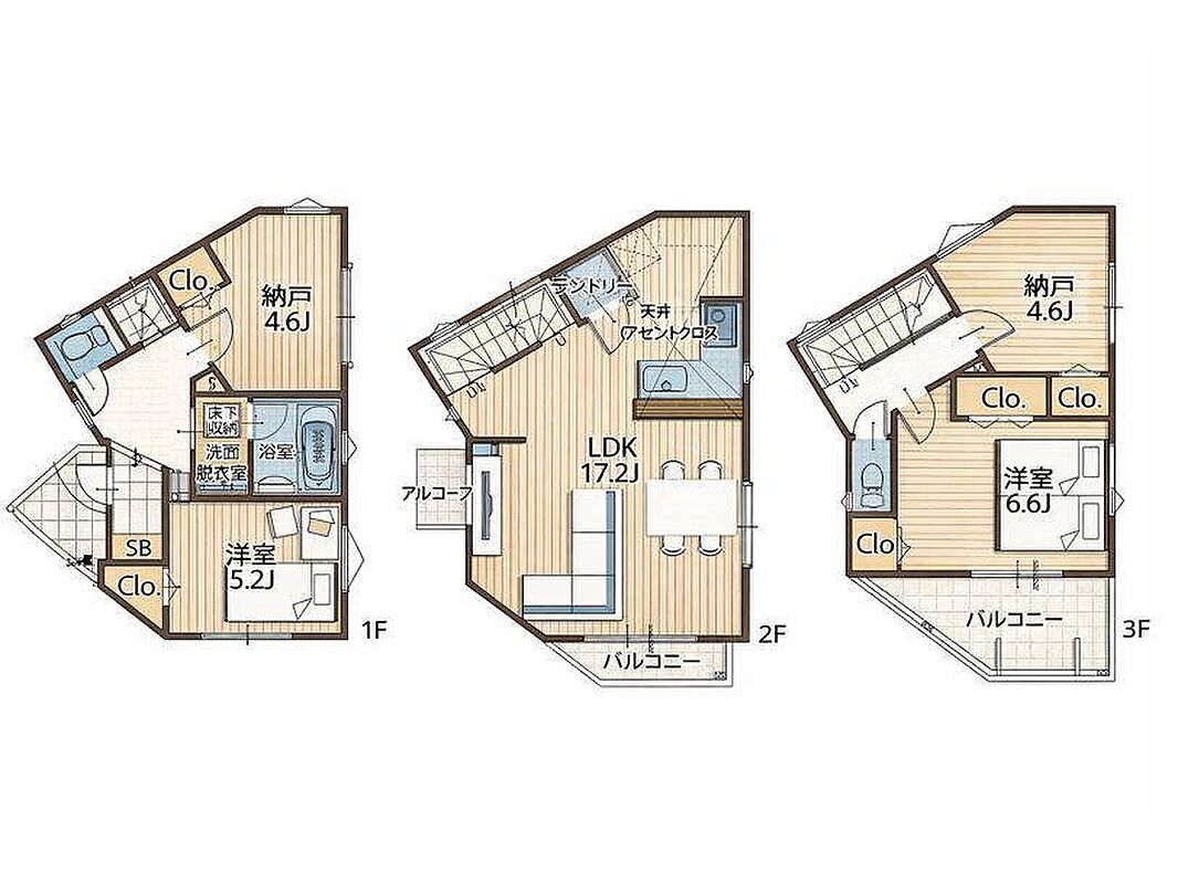 | 間取り | 2LDK+2S~3LDK+S | 建物構造 | 木造 3階建 |