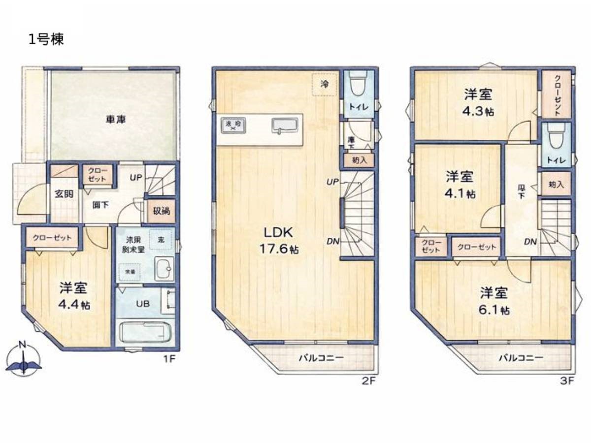 | 建物面積 | 101.13m2~106.5m2 | 土地面積 | 50.36m2~61.47m2 |