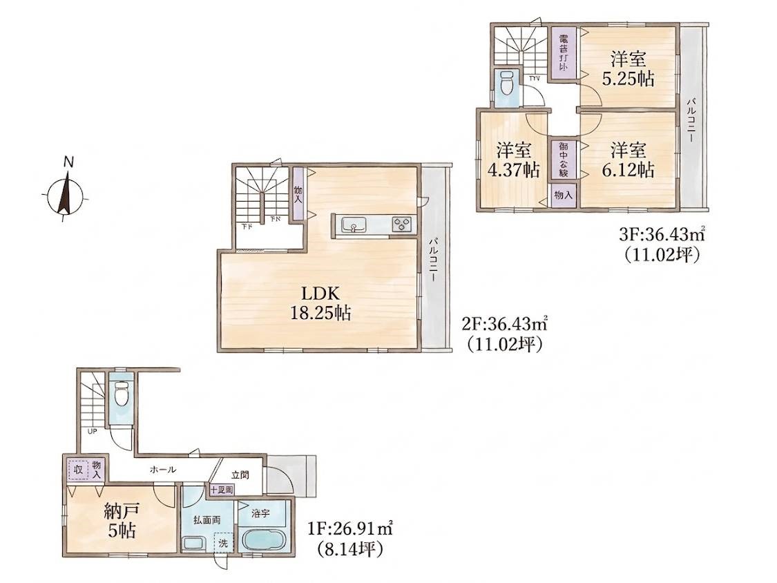 | 間取り | 2LDK+2S~4LDK | 建物構造 | 木造 3階建 |