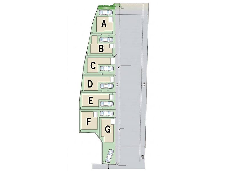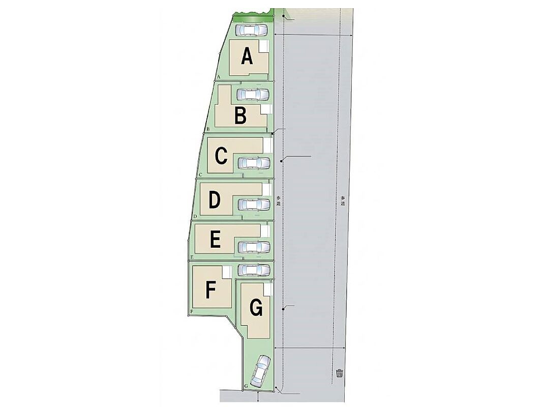 | 駐車場 | 1台 | 道路の幅員 | F号棟:東11m/C号棟:東11m/D号棟:東11m/B号棟:東11m/G号棟:東11m 南6m/E号棟:東11m/A号棟:東11m |