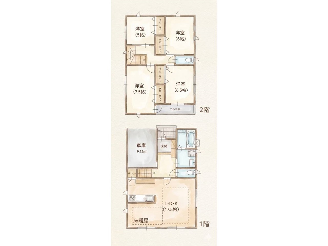 - ※完成予想図やCG合成画像は、門塀・植栽・庭・外観等、実際とは多少異なる場合があります。