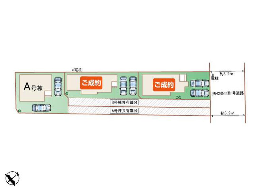 | 駐車場 | 2台 | 道路の幅員 | 道路幅:8.9m、アスファルト舗装 |