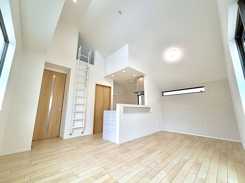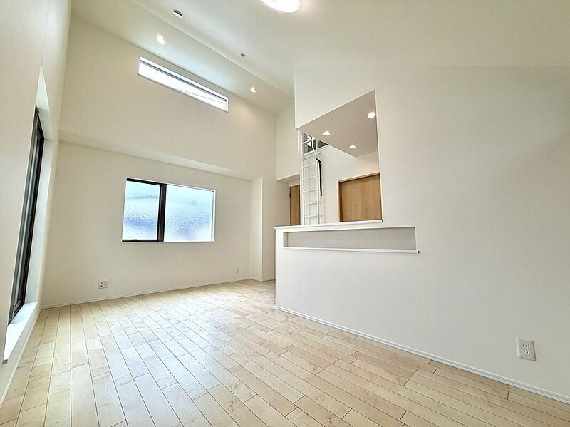 魅力1 【東南向き公道面で陽当り良好】 勾配天井で開放感のあるLDK
