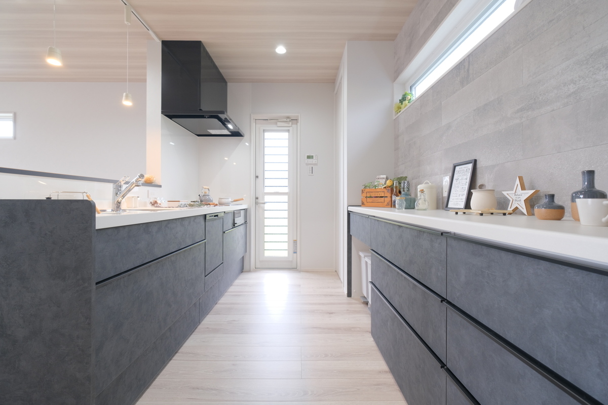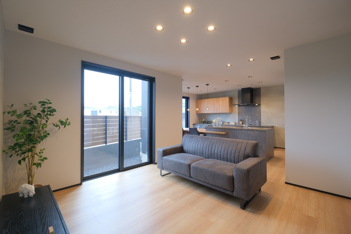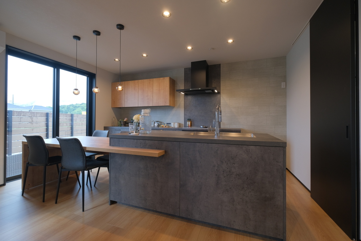 ■11号地:新築一戸建て【公開中】LDKにはグラフテクトのキッチンを採用し、 洗練された 大人かっこいい空間を演出。