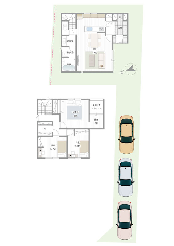 新築一戸建て 【小学校まで徒歩7分】のびやかリビング&書斎付き3LDK~駐車3台×2Fバルコニーのある家
