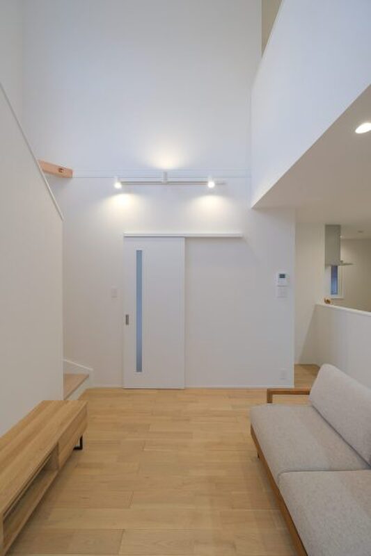 ■吹き抜けからやわらかな光が降り注ぐリビング。