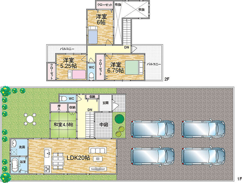 - ※完成予想図やCG合成画像は、門塀・植栽・庭・外観等、実際とは多少異なる場合があります。