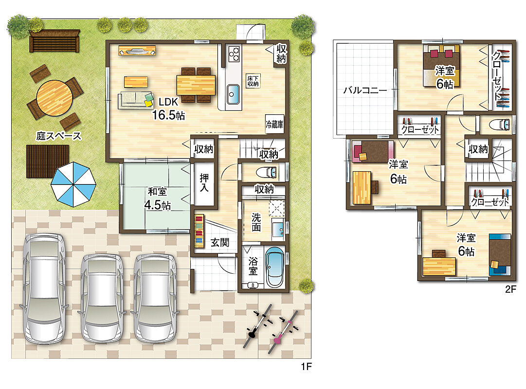 - ※完成予想図やCG合成画像は、門塀・植栽・庭・外観等、実際とは多少異なる場合があります。