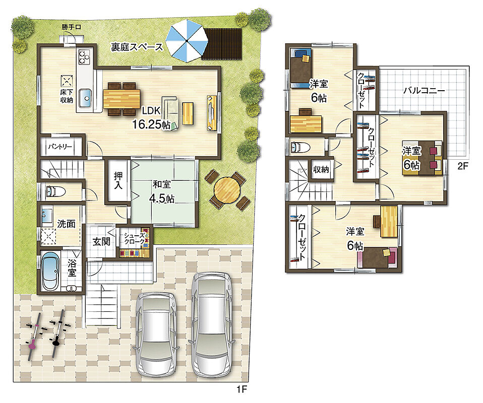 - ※完成予想図やCG合成画像は、門塀・植栽・庭・外観等、実際とは多少異なる場合があります。