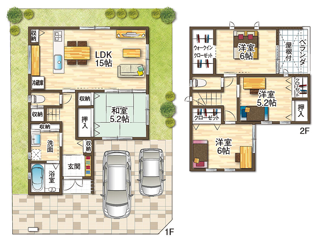 - ※完成予想図やCG合成画像は、門塀・植栽・庭・外観等、実際とは多少異なる場合があります。