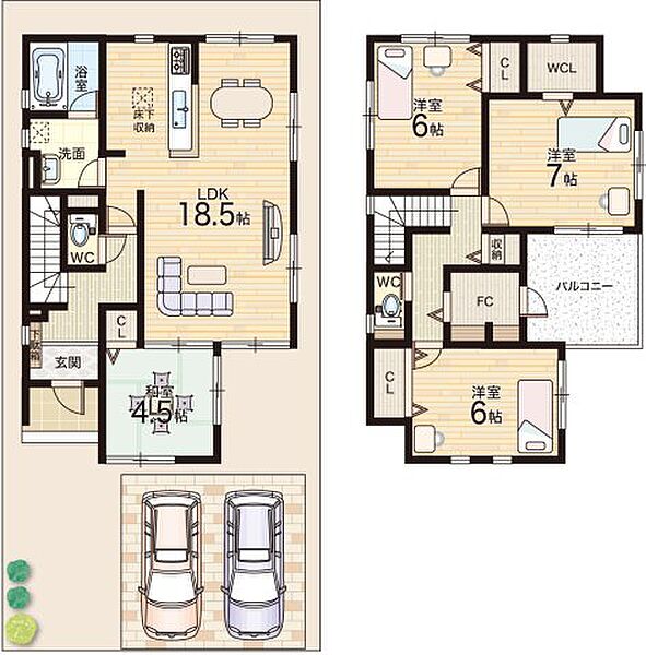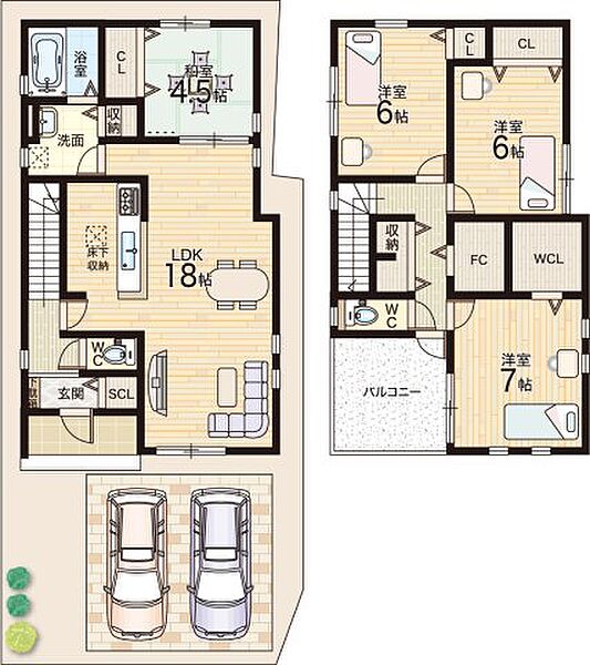- ※完成予想図やCG合成画像は、門塀・植栽・庭・外観等、実際とは多少異なる場合があります。