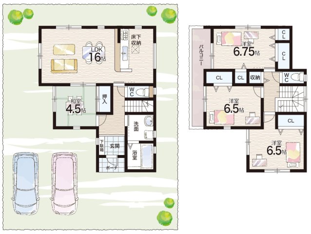 - ※完成予想図やCG合成画像は、門塀・植栽・庭・外観等、実際とは多少異なる場合があります。