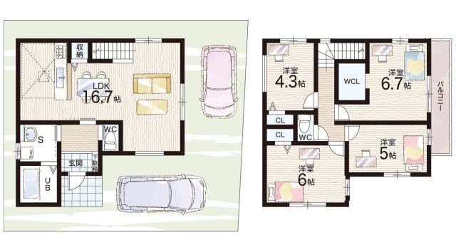 - ※完成予想図やCG合成画像は、門塀・植栽・庭・外観等、実際とは多少異なる場合があります。