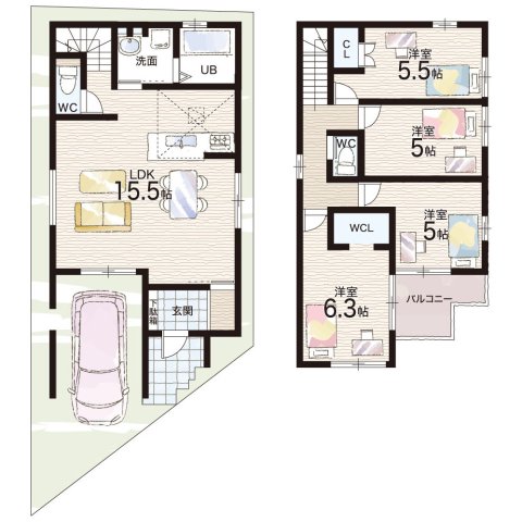 - ※完成予想図やCG合成画像は、門塀・植栽・庭・外観等、実際とは多少異なる場合があります。