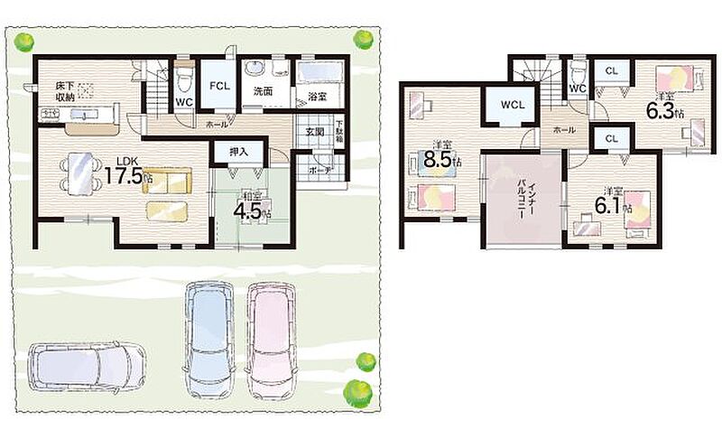 - ※完成予想図やCG合成画像は、門塀・植栽・庭・外観等、実際とは多少異なる場合があります。