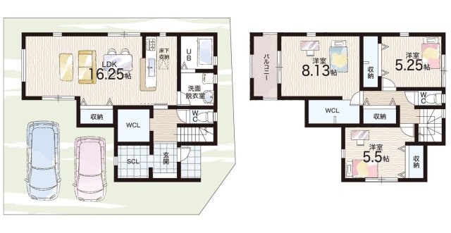 - ※完成予想図やCG合成画像は、門塀・植栽・庭・外観等、実際とは多少異なる場合があります。