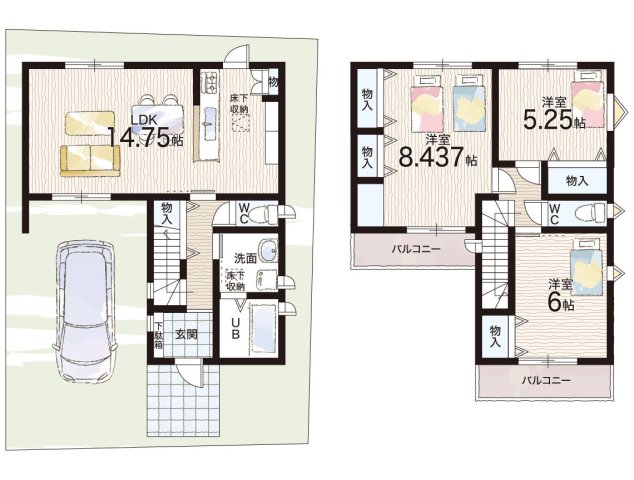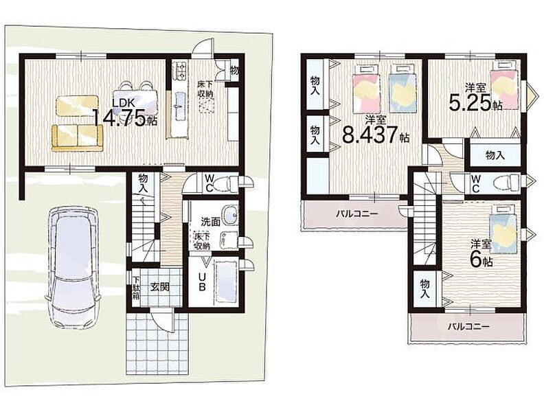 - ※完成予想図やCG合成画像は、門塀・植栽・庭・外観等、実際とは多少異なる場合があります。