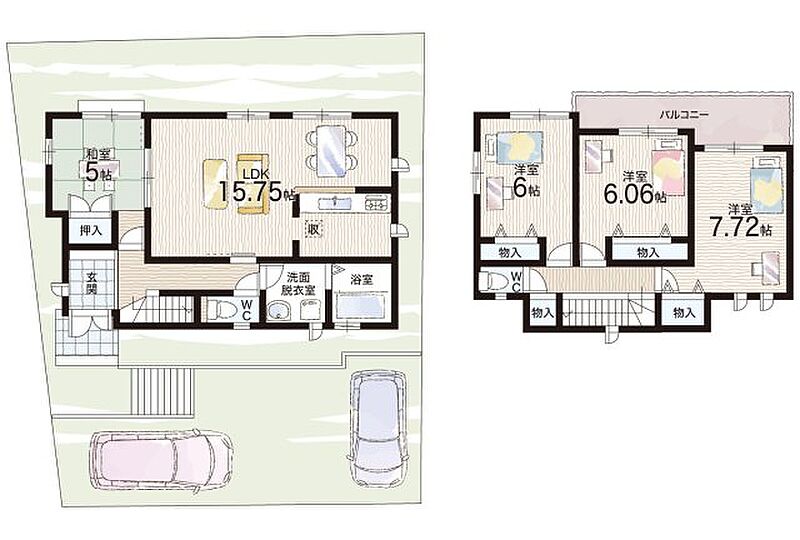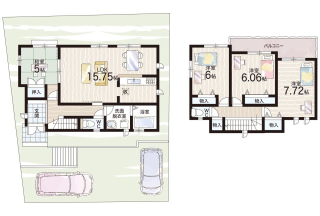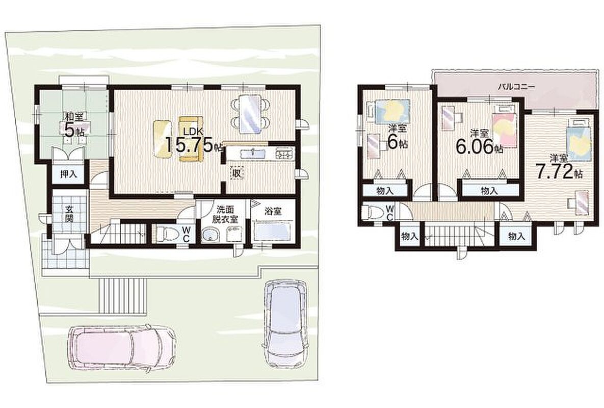 - ※完成予想図やCG合成画像は、門塀・植栽・庭・外観等、実際とは多少異なる場合があります。