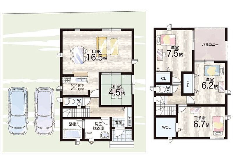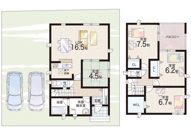 - ※完成予想図やCG合成画像は、門塀・植栽・庭・外観等、実際とは多少異なる場合があります。