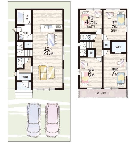 1区画 間取り 2LDK+S(納戸) 価格 4898万円 建物面積 97.70m2 土地面積 120.49m2 -