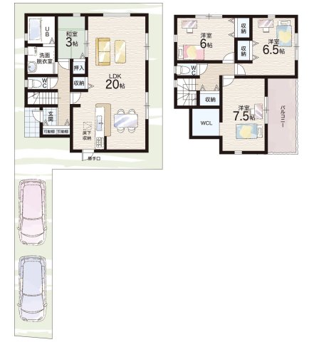 - ※完成予想図やCG合成画像は、門塀・植栽・庭・外観等、実際とは多少異なる場合があります。