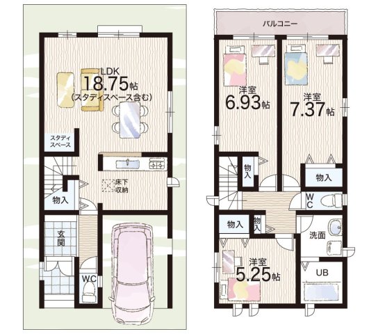 - ※完成予想図やCG合成画像は、門塀・植栽・庭・外観等、実際とは多少異なる場合があります。