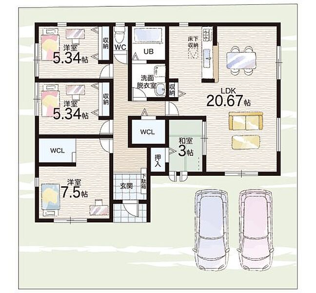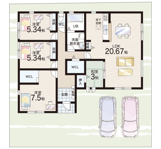- ※完成予想図やCG合成画像は、門塀・植栽・庭・外観等、実際とは多少異なる場合があります。