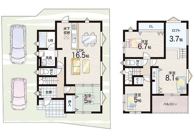 | 駐車場 | 2台 | 道路の幅員 | 北側5.7m公道 |