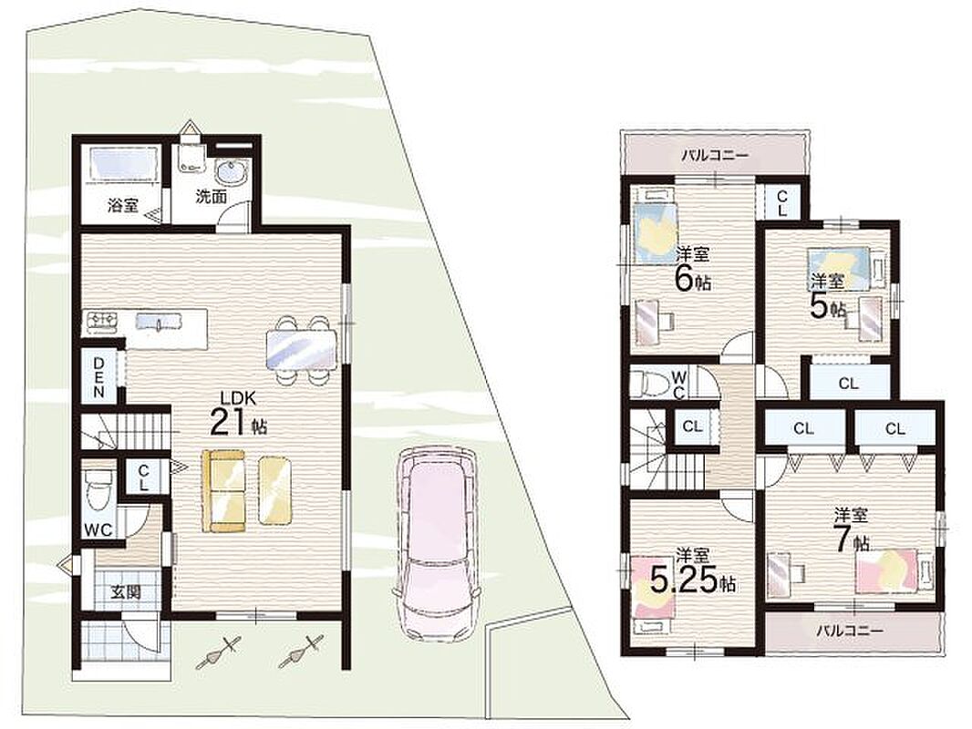 - ※完成予想図やCG合成画像は、門塀・植栽・庭・外観等、実際とは多少異なる場合があります。