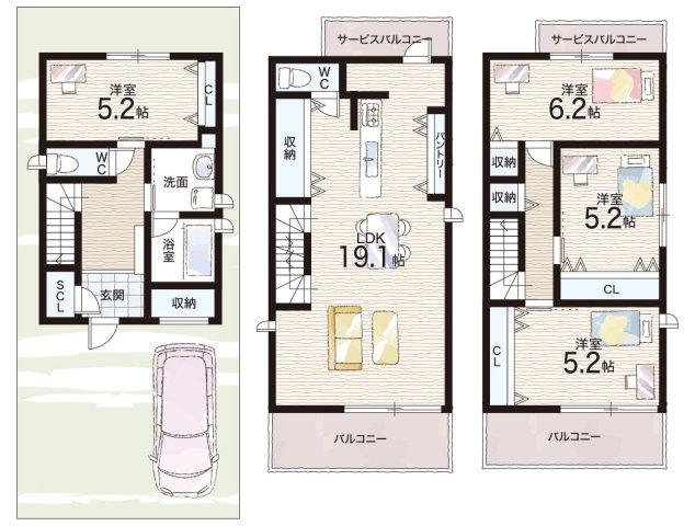 | 間取り | 4LDK | 建物構造 | 木造 地上3階建て |