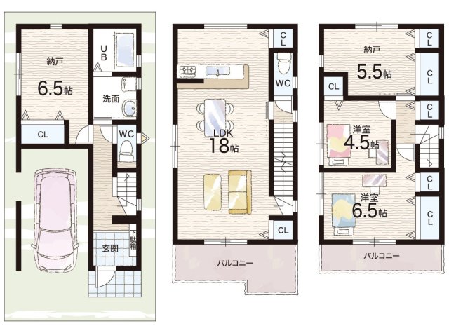 | 間取り | 2LDK+S(納戸) | 建物構造 | 木造 地上3階建て |