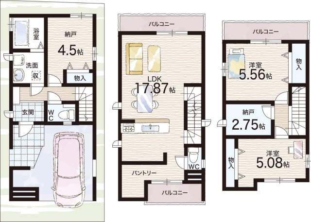 | 間取り | 2LDK+S(納戸) | 建物構造 | 木造 地上3階建て |