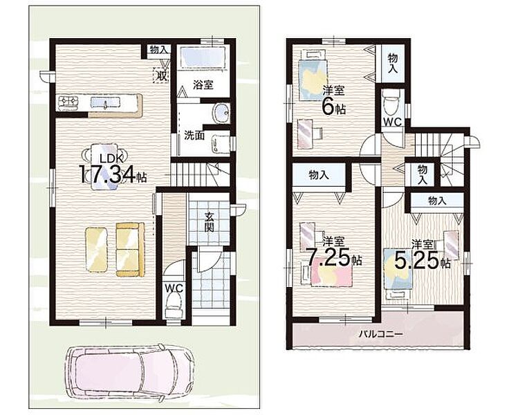 - ※完成予想図やCG合成画像は、門塀・植栽・庭・外観等、実際とは多少異なる場合があります。