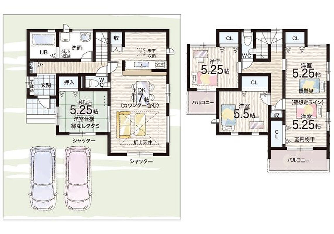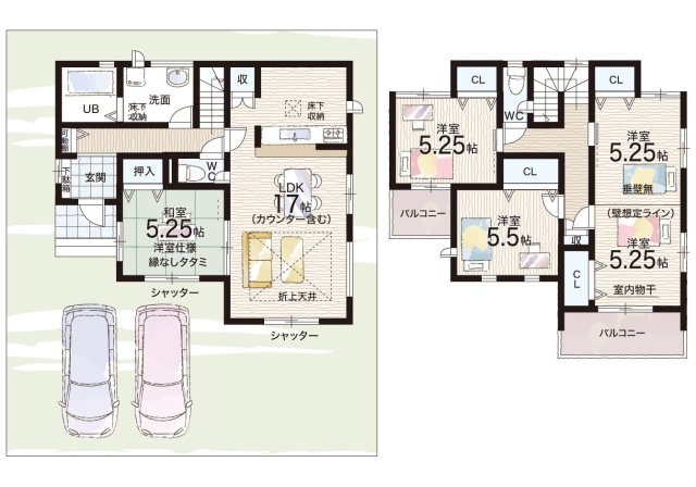 - ※完成予想図やCG合成画像は、門塀・植栽・庭・外観等、実際とは多少異なる場合があります。