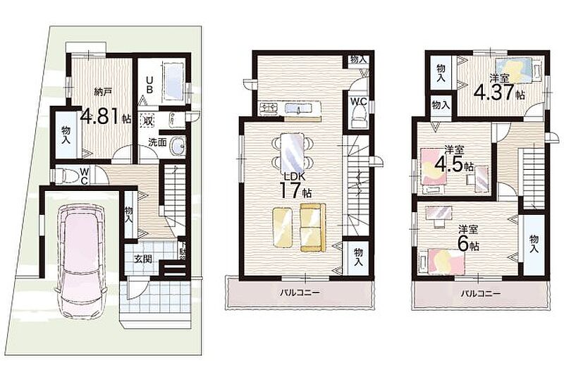 | 間取り | 3LDK+S(納戸) | 建物構造 | 木造 地上3階建て |