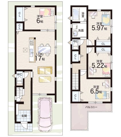 - ※完成予想図やCG合成画像は、門塀・植栽・庭・外観等、実際とは多少異なる場合があります。