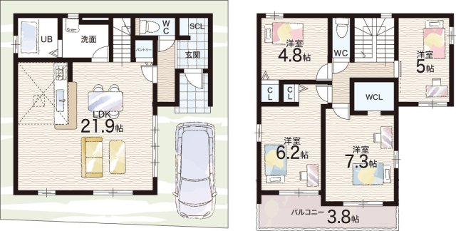 - ※完成予想図やCG合成画像は、門塀・植栽・庭・外観等、実際とは多少異なる場合があります。