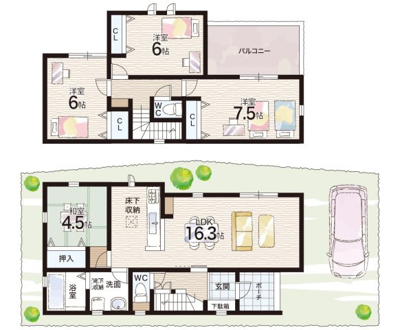 - ※完成予想図やCG合成画像は、門塀・植栽・庭・外観等、実際とは多少異なる場合があります。