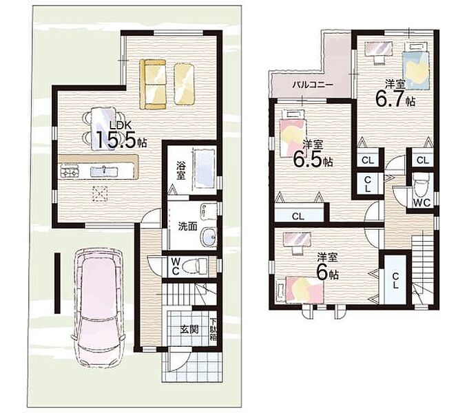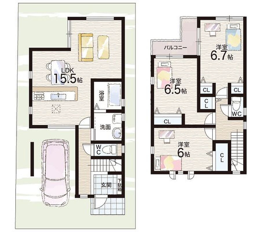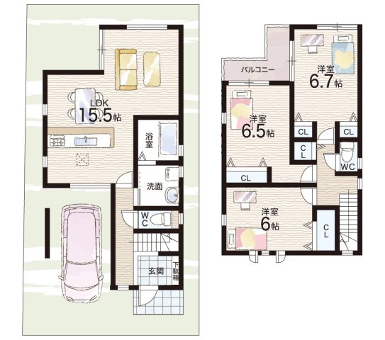 - ※完成予想図やCG合成画像は、門塀・植栽・庭・外観等、実際とは多少異なる場合があります。