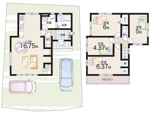 - ※完成予想図やCG合成画像は、門塀・植栽・庭・外観等、実際とは多少異なる場合があります。