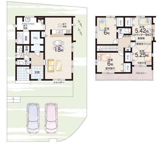 - ※完成予想図やCG合成画像は、門塀・植栽・庭・外観等、実際とは多少異なる場合があります。