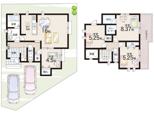 | 建物面積 | 93.56m2~95.85m2 | 土地面積 | 102.16m2~122.31m2 |