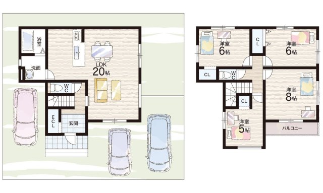 - ※完成予想図やCG合成画像は、門塀・植栽・庭・外観等、実際とは多少異なる場合があります。