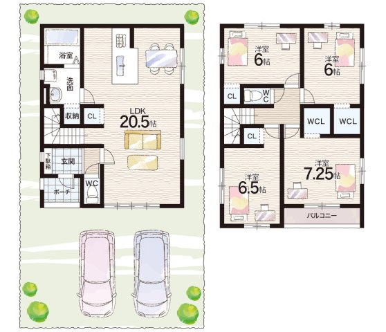 - ※完成予想図やCG合成画像は、門塀・植栽・庭・外観等、実際とは多少異なる場合があります。