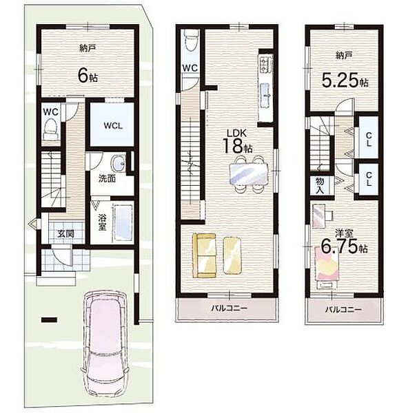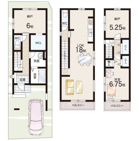 1区画 間取り 1LDK+S(納戸) 価格 2898万円 建物面積 93.56m2 土地面積 74.20m2 -